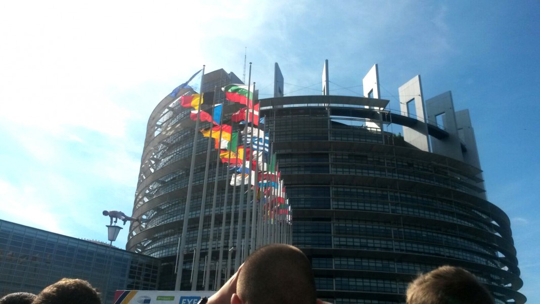 În fața intrării era amplasată o scenă, pe care la ora 10:30 a avut loc deschiderea oficială a EYE 2016. Participanții au fost întâmpinați de oficiali ai Parlamentului cât și ai Strasbourg-ului. Momentele artistice din deschidere au constat într-un număr de acrobație “pe felinar”, ca să-l numesc așa, plus un număr de muzică asigurat de o gașcă de tineri slovaci – și care mie, una, mi-a dat fiori.